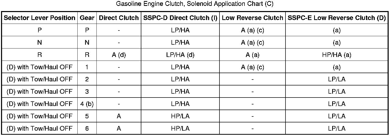 Gasoline Engine Clutch, Solenoid Application Chart (C):