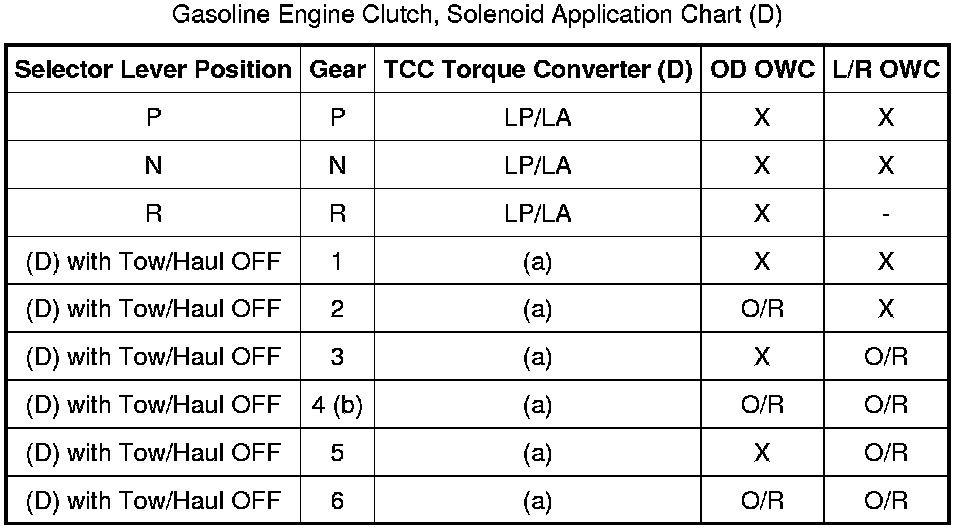 Gasoline Engine Clutch, Solenoid Application Chart (D):