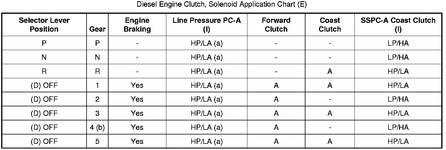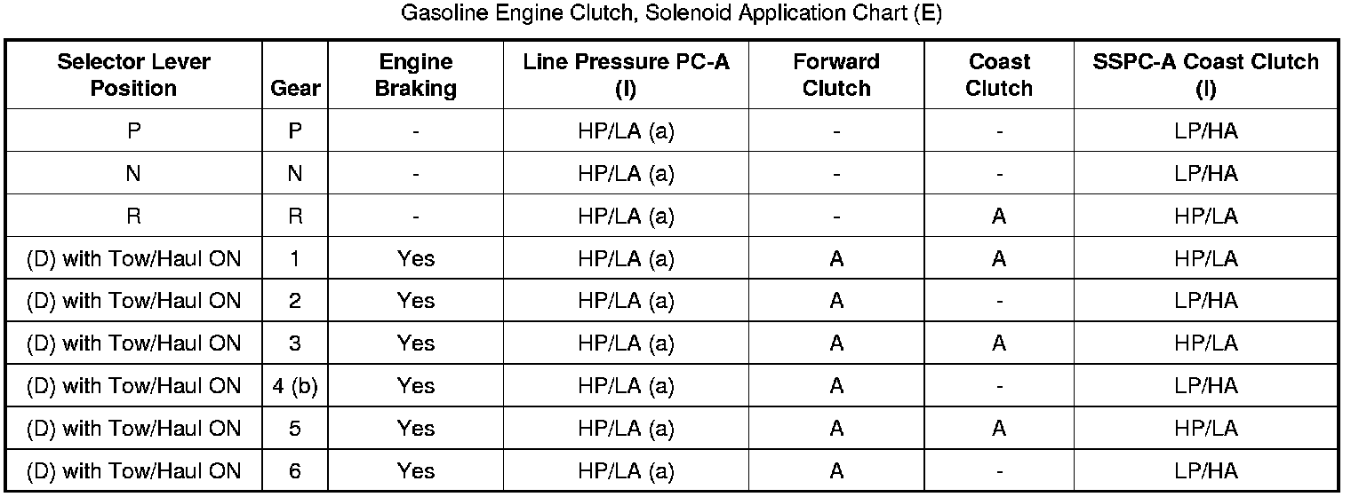 Gasoline Engine Clutch, Solenoid Application Chart (E):