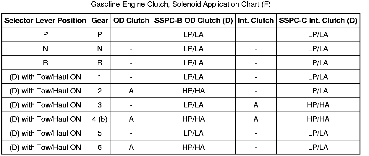Gasoline Engine Clutch, Solenoid Application Chart (F):