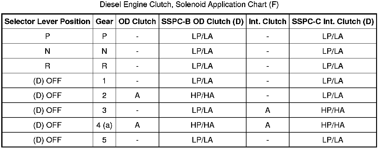 Diesel Engine Clutch, Solenoid Application Chart (F):