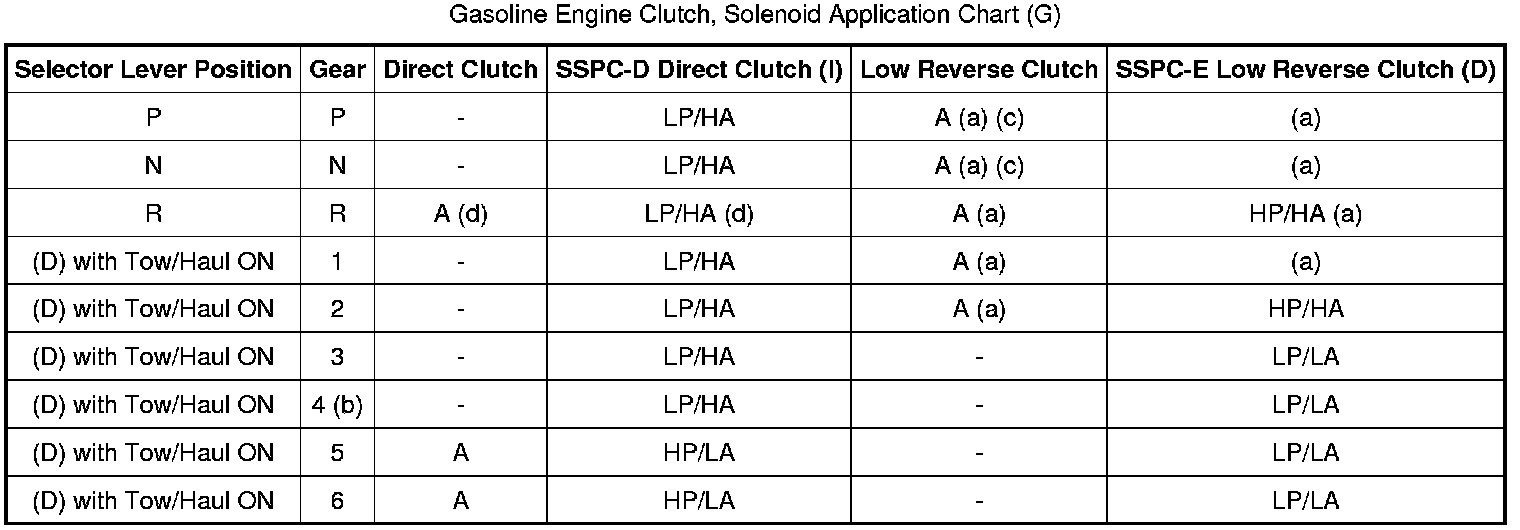 Gasoline Engine Clutch, Solenoid Application Chart (G):