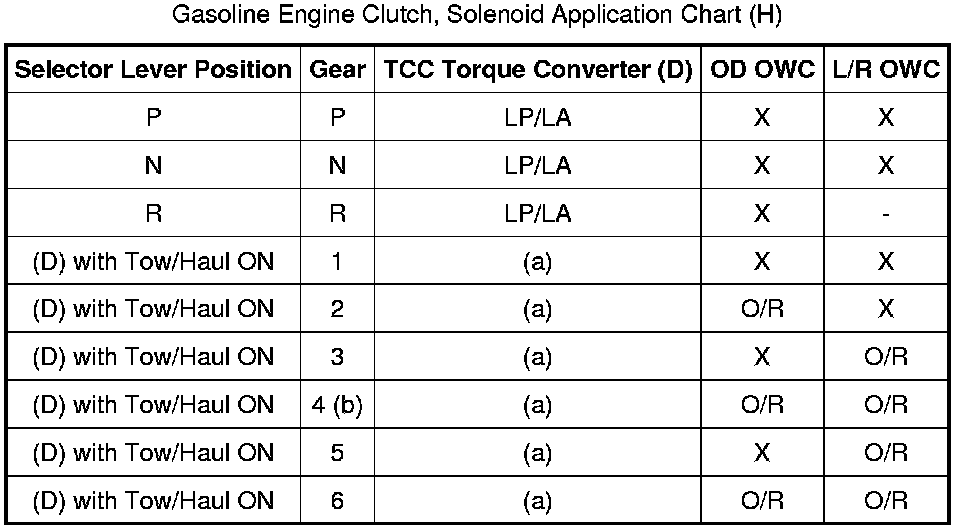 Gasoline Engine Clutch, Solenoid Application Chart (H):