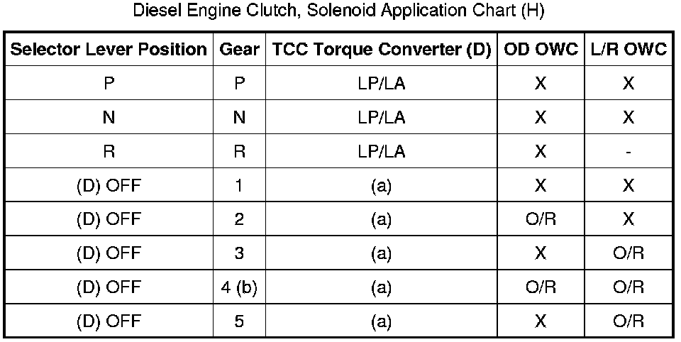 Diesel Engine Clutch, Solenoid Application Chart (H):