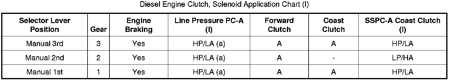 Diesel Engine Clutch, Solenoid Application Chart (I):