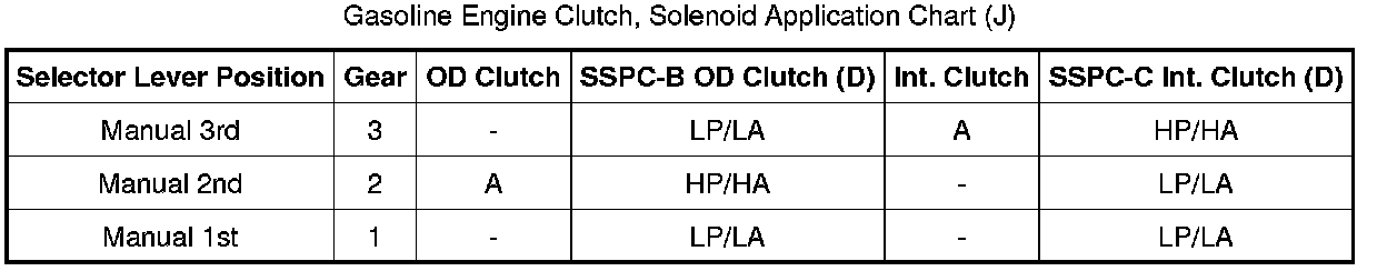 Gasoline Engine Clutch, Solenoid Application Chart (J):