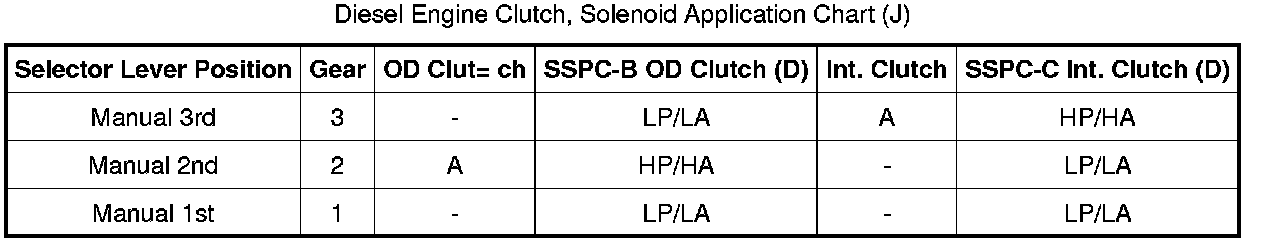 Diesel Engine Clutch, Solenoid Application Chart (J):