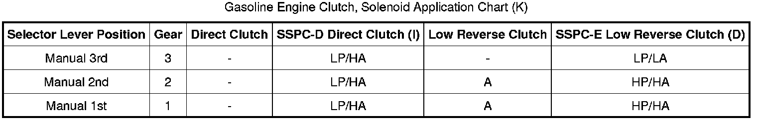 Gasoline Engine Clutch, Solenoid Application Chart (K):