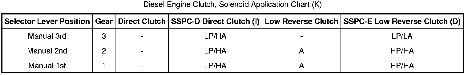 Diesel Engine Clutch, Solenoid Application Chart (K):