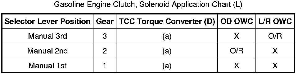 Gasoline Engine Clutch, Solenoid Application Chart (L):