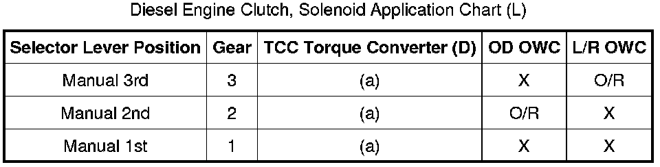 Diesel Engine Clutch, Solenoid Application Chart (L):