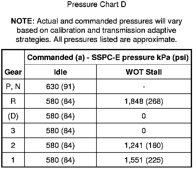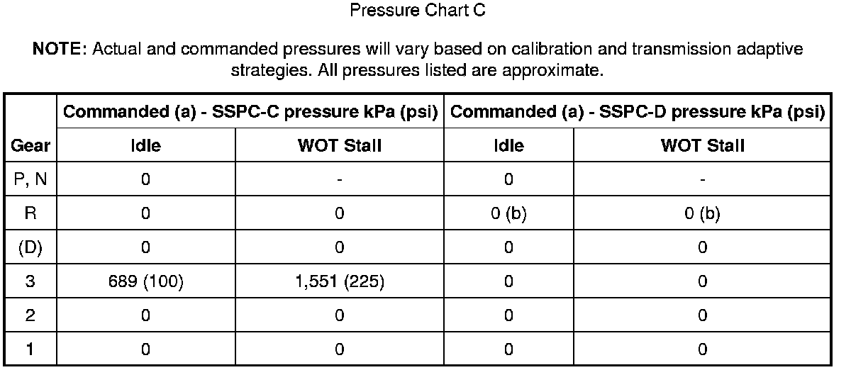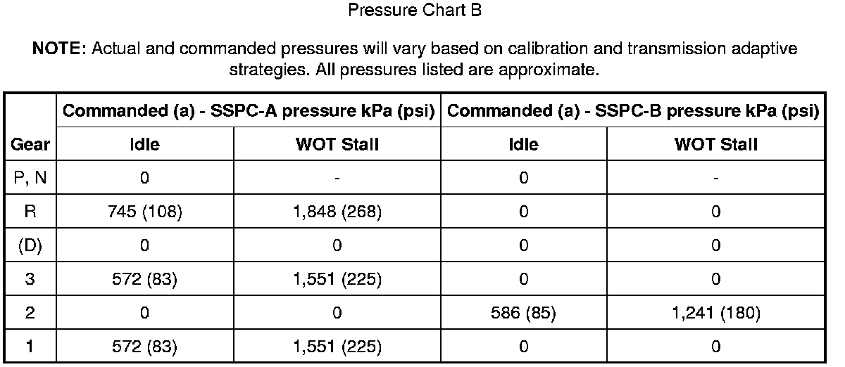 (b) = Shift Solenoid Pressure Control D (SSPCD) commanded pressure as viewed on diagnostic equipment will be zero. The manual valve controls pressure to the direct clutch in the R detent position.