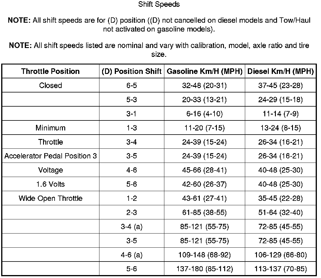Shift Speeds: