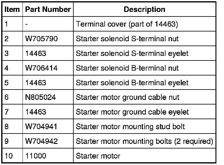 WARNING: Always disconnect the battery ground cable at the battery before disconnecting the starter motor battery terminal lead. If a tool is shorted at the starter motor battery terminal, the tool can quickly heat enough to cause a skin burn. Failure to follow this instruction may result in serious personal injury.