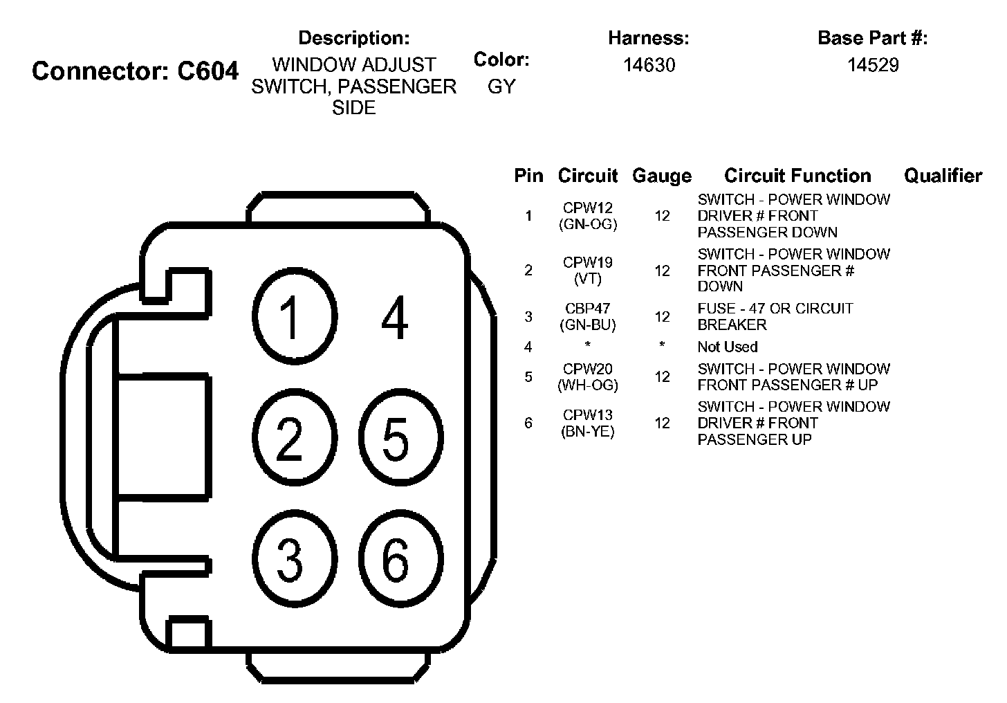 Window Adjust Switch, Passenger Side