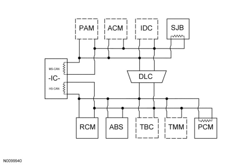 The IC is the gateway module, translating HS-CAN to MS-CAN and vice versa. This information allows a message to be distributed throughout both networks. The IC is the only module on this vehicle that has this ability.