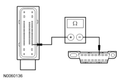 - Measure the resistance between the ABS module C155-18, circuit VDB05 (WH), harness side and the DLC C251-14, circuit VDB05 (WH), harness side.