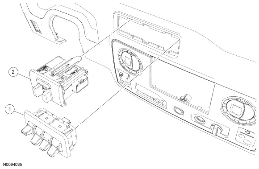 Using a small screwdriver, or similar tool, remove the coin tray/storage bin (or switch assembly if equipped) by prying out on the RH side of the tray/bin.
