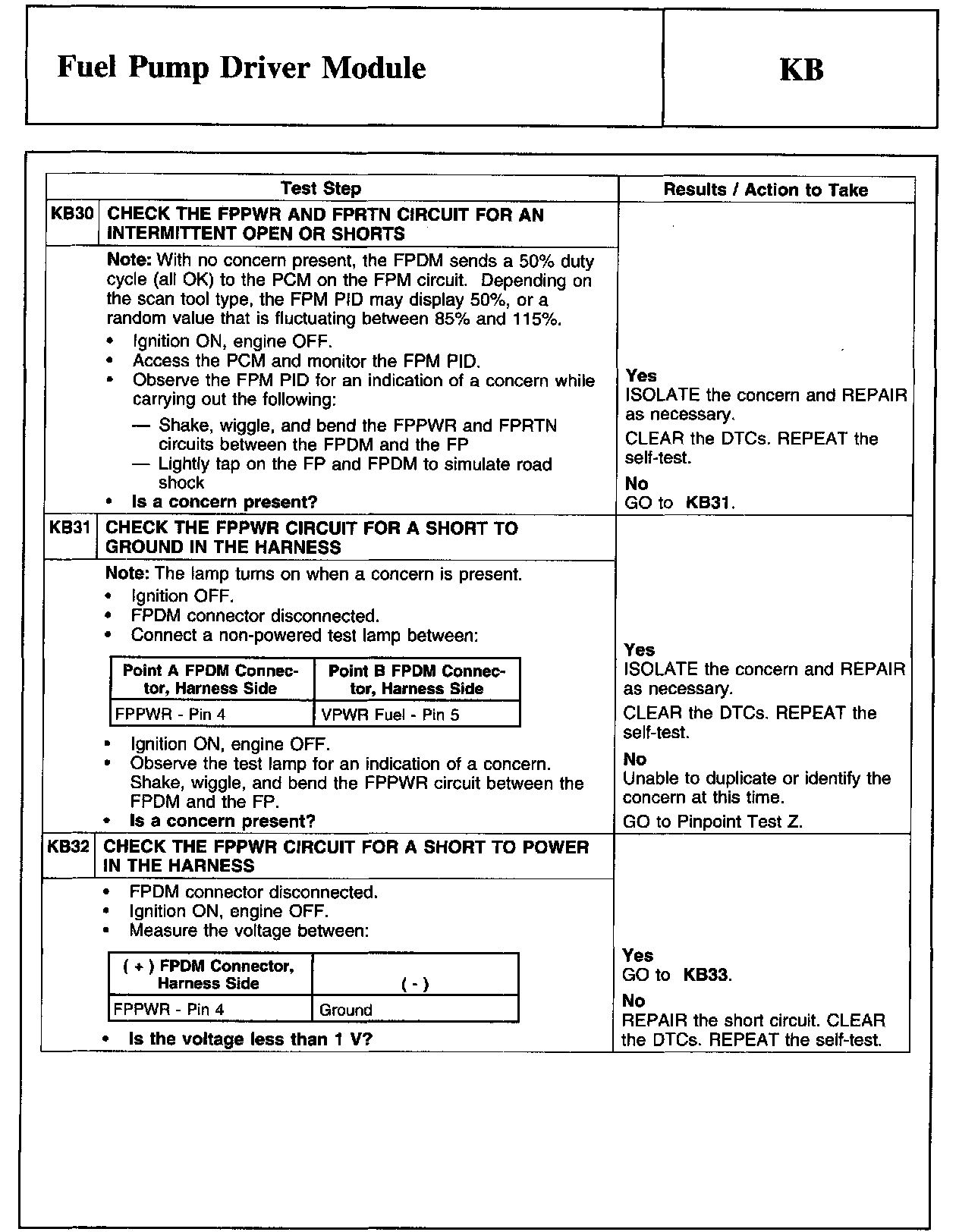 PINPOINT TEST KB: FUEL PUMP DRIVER MODULE