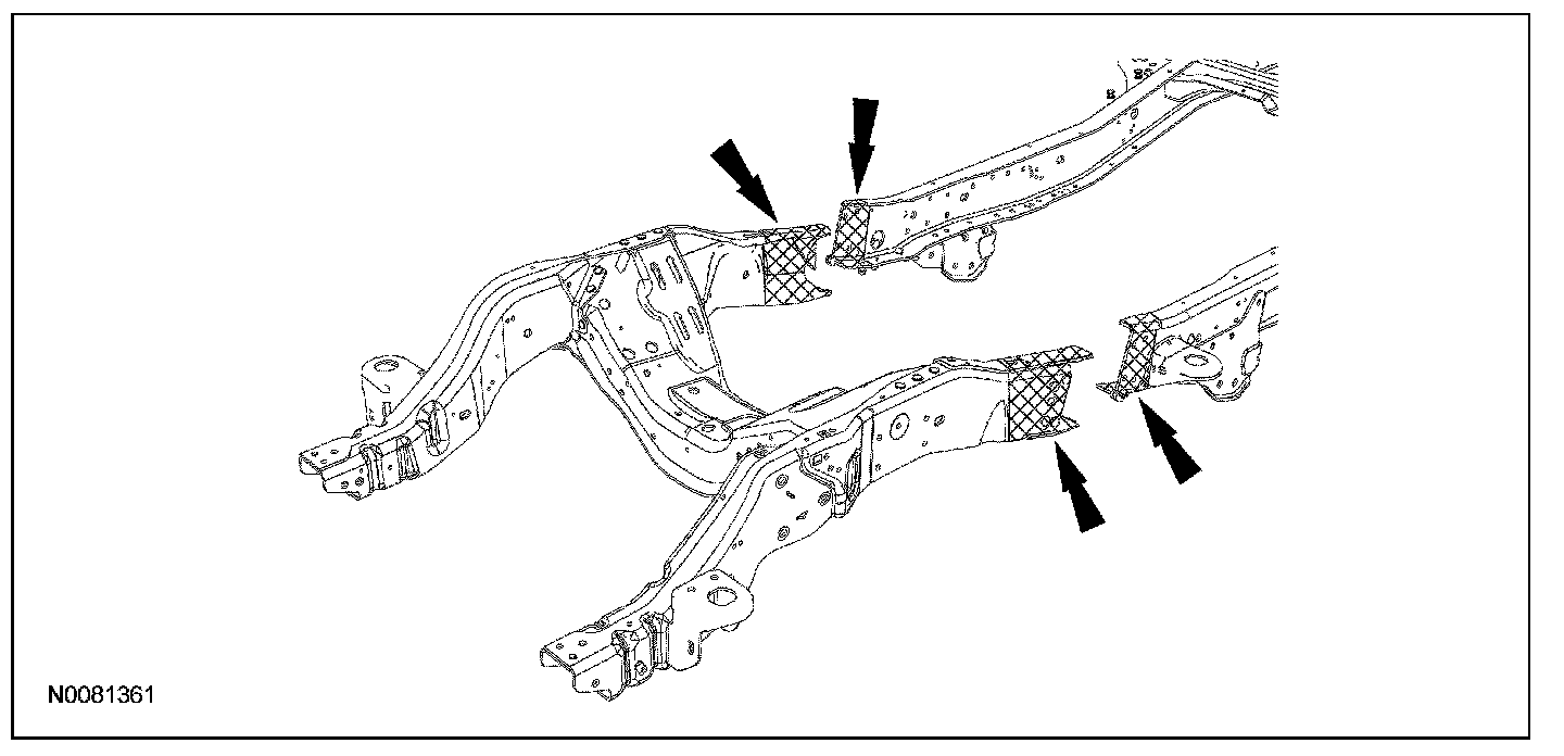 4. NOTE: Full frame vehicle, front rail-to-mid rail section repair shown.