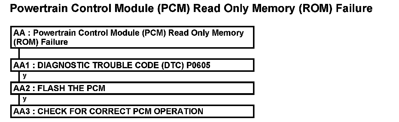 PINPOINT TEST AA: POWERTRAIN CONTROL MODULE (PCM) READ ONLY MEMORY (ROM) FAILUREFlow Chart: