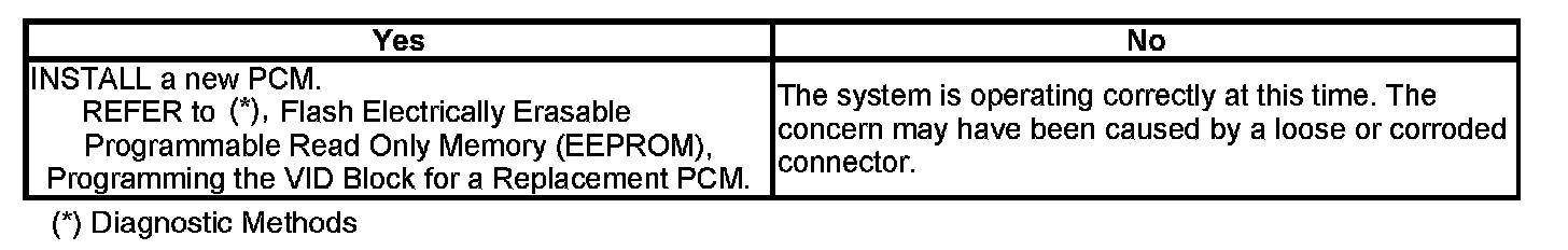- Flash the PCM. REFER to Diagnostic Methods, Flash Electrically Erasable Programmable Read Only Memory (EEPROM), Programming the VID Block for a Replacement PCM. Programming and Relearning