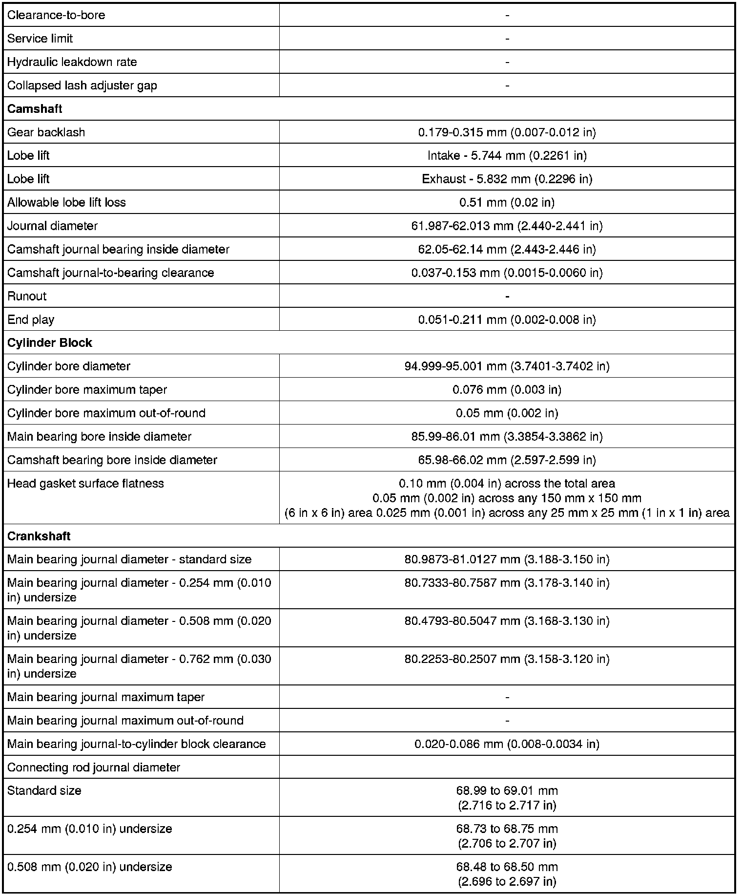 6.0L (Hydraulic Valve Adjuster / Camshaft / Cylinder Block / Crankshaft):