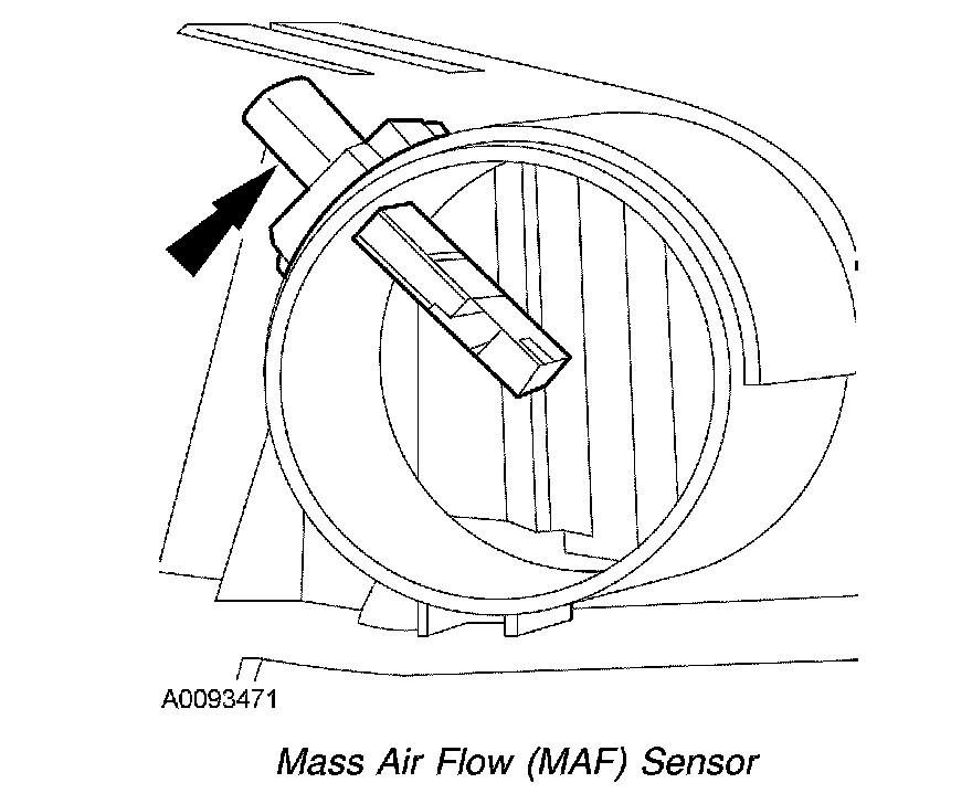 The MAF sensor provides an analog voltage signal to the PCM proportional to the intake air mass. The MAF sensor uses a hot wire sensing element to measure the amount of air entering the engine. The hot wire is maintained at 200°C (392°F) above the ambient temperature. Air passing over the hot wire cools the wire. The current required to maintain the temperature of the hot wire is proportional to the air mass flow. The MAF signal is used to calculate the EGR flow rate and for concern detection.