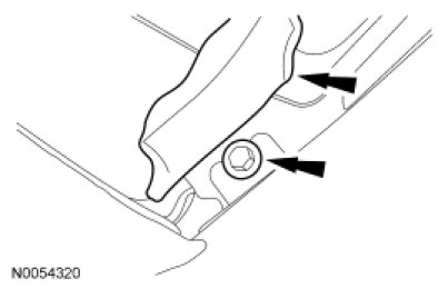 5. NOTICE: The front bumper cover may be damaged if pulled outward too far while trying to access the bolts.