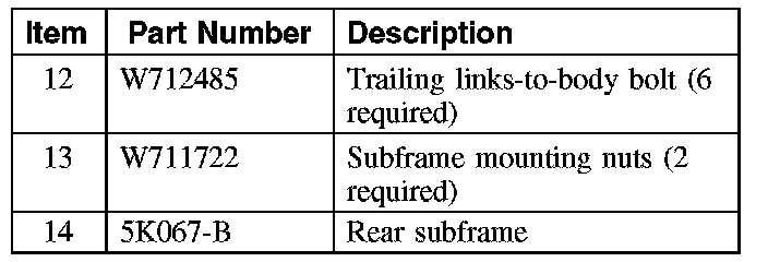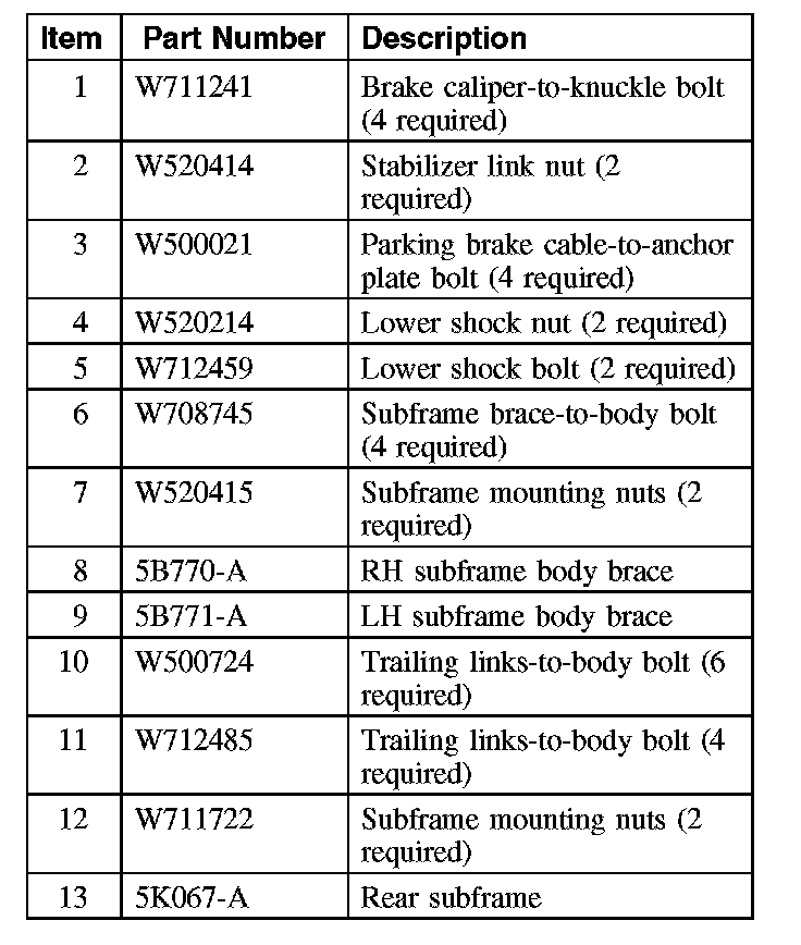 NOTICE: Suspension and subframe fasteners are critical parts because they affect performance of vital parts and systems and their failure may result in major service expense. A new part with the same part number must be installed if installation becomes necessary. Do not use a replacement part of lesser quality or substitute design. Torque values must be used as specified during reassembly to make sure of correct retention of these parts.