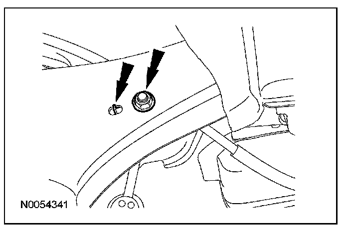 15. Remove the 2 front (1 each side) mounting nuts from the rear subframe.