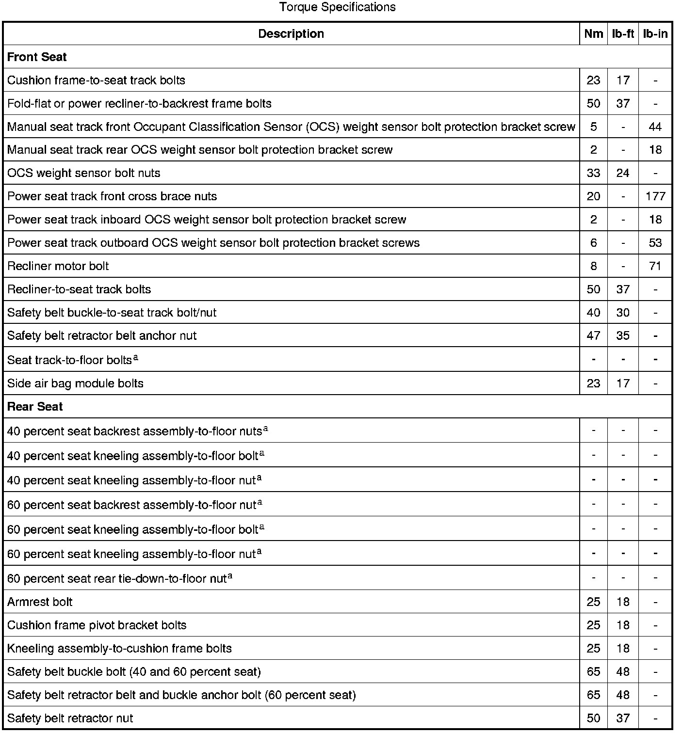 Seats: Specifications