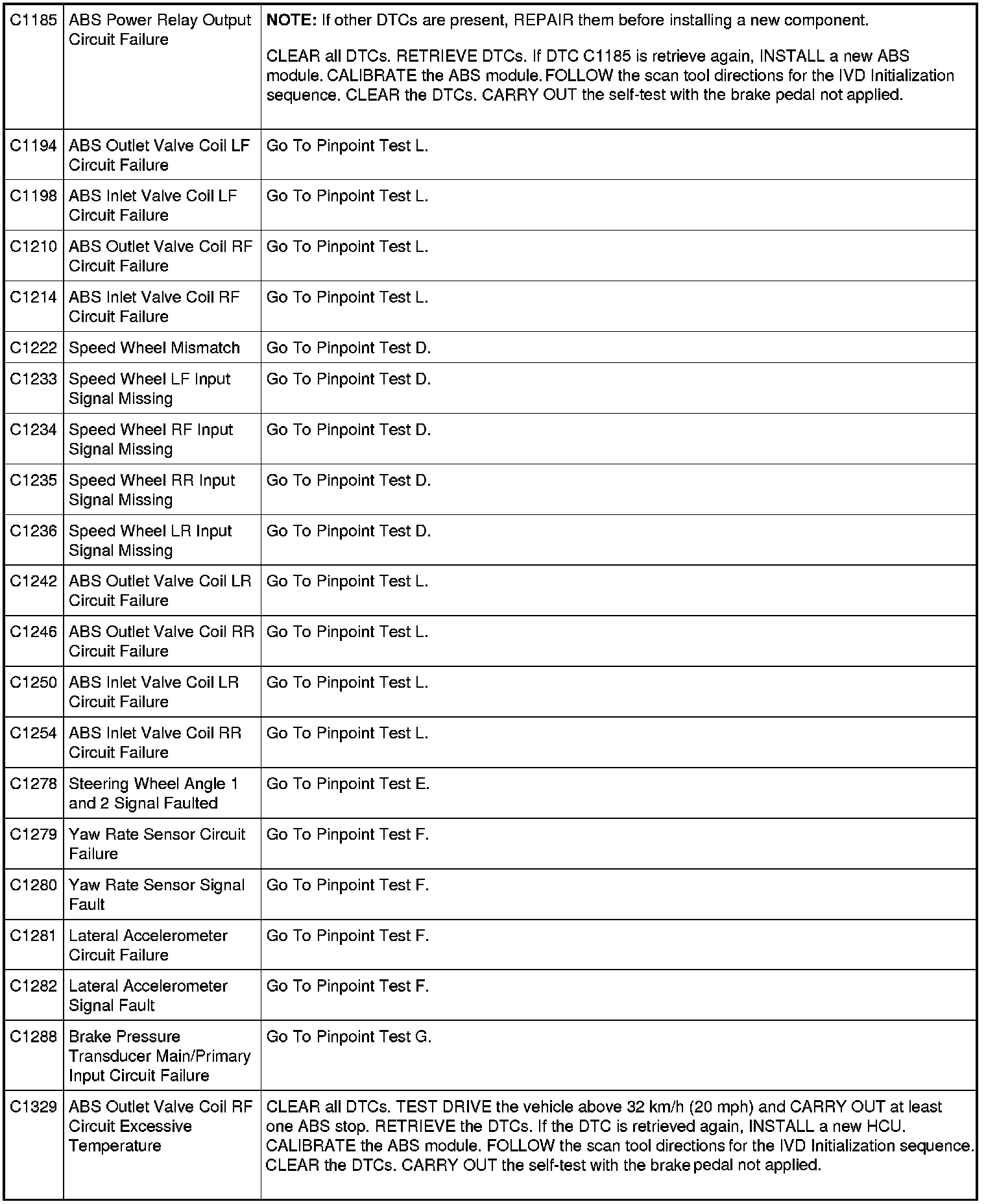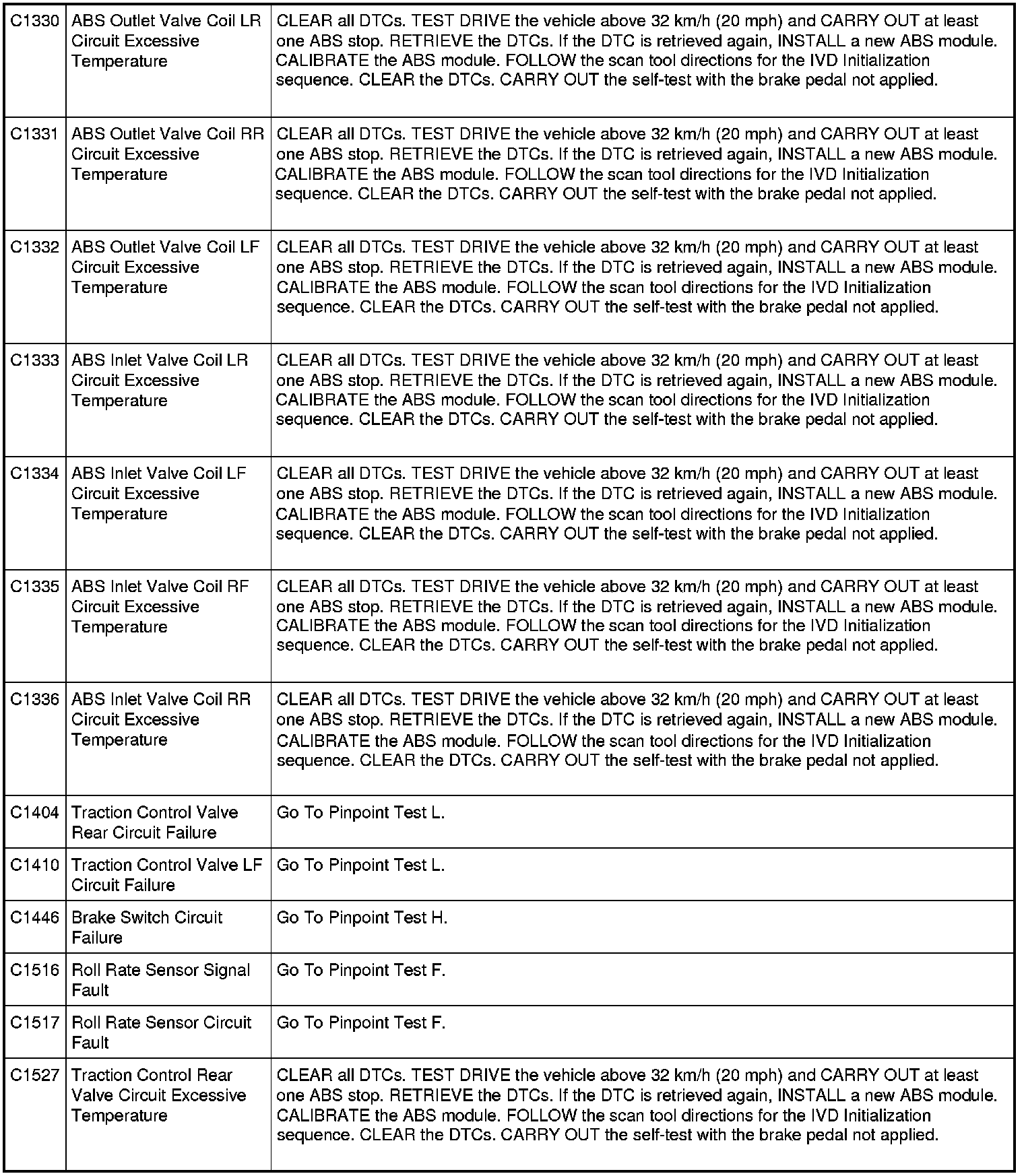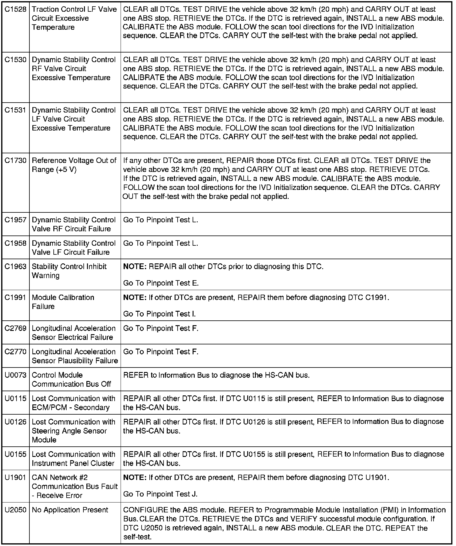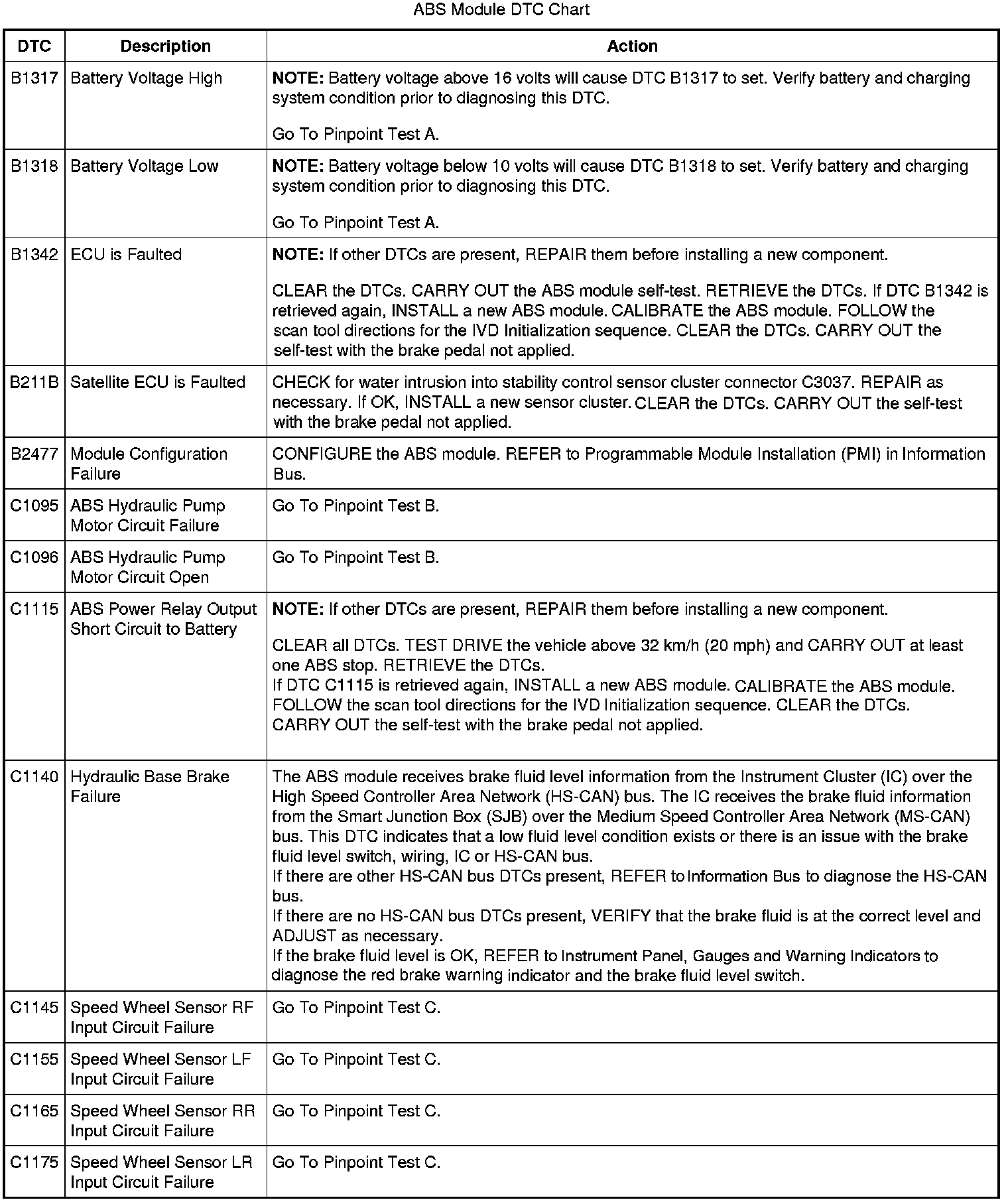 ABS Module DTC Chart
