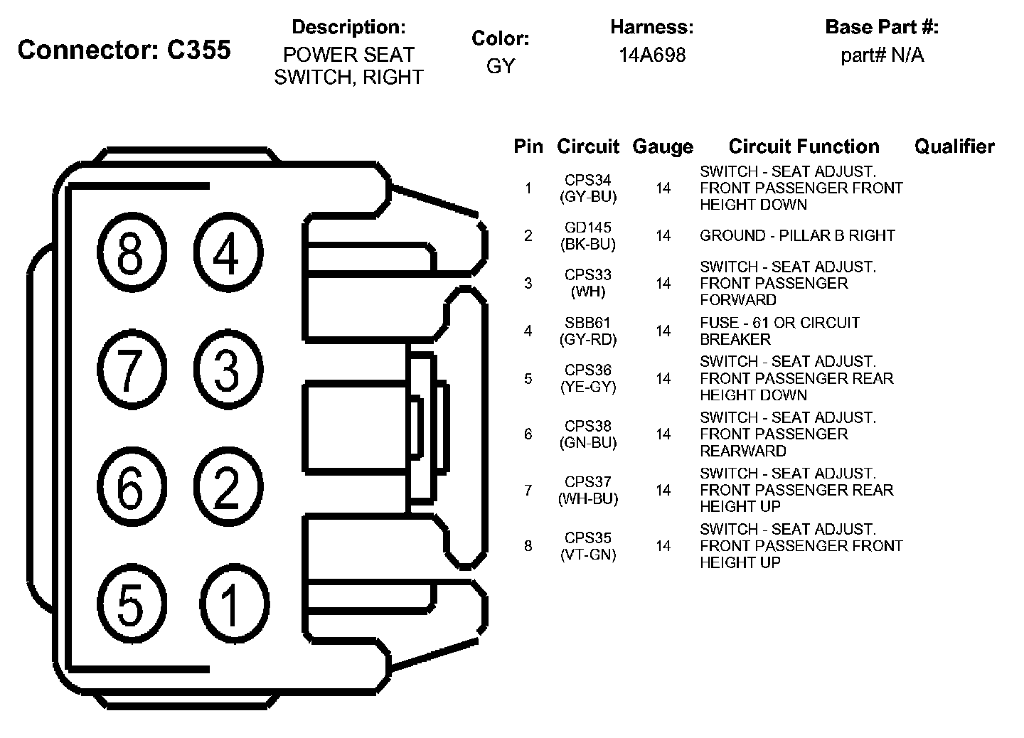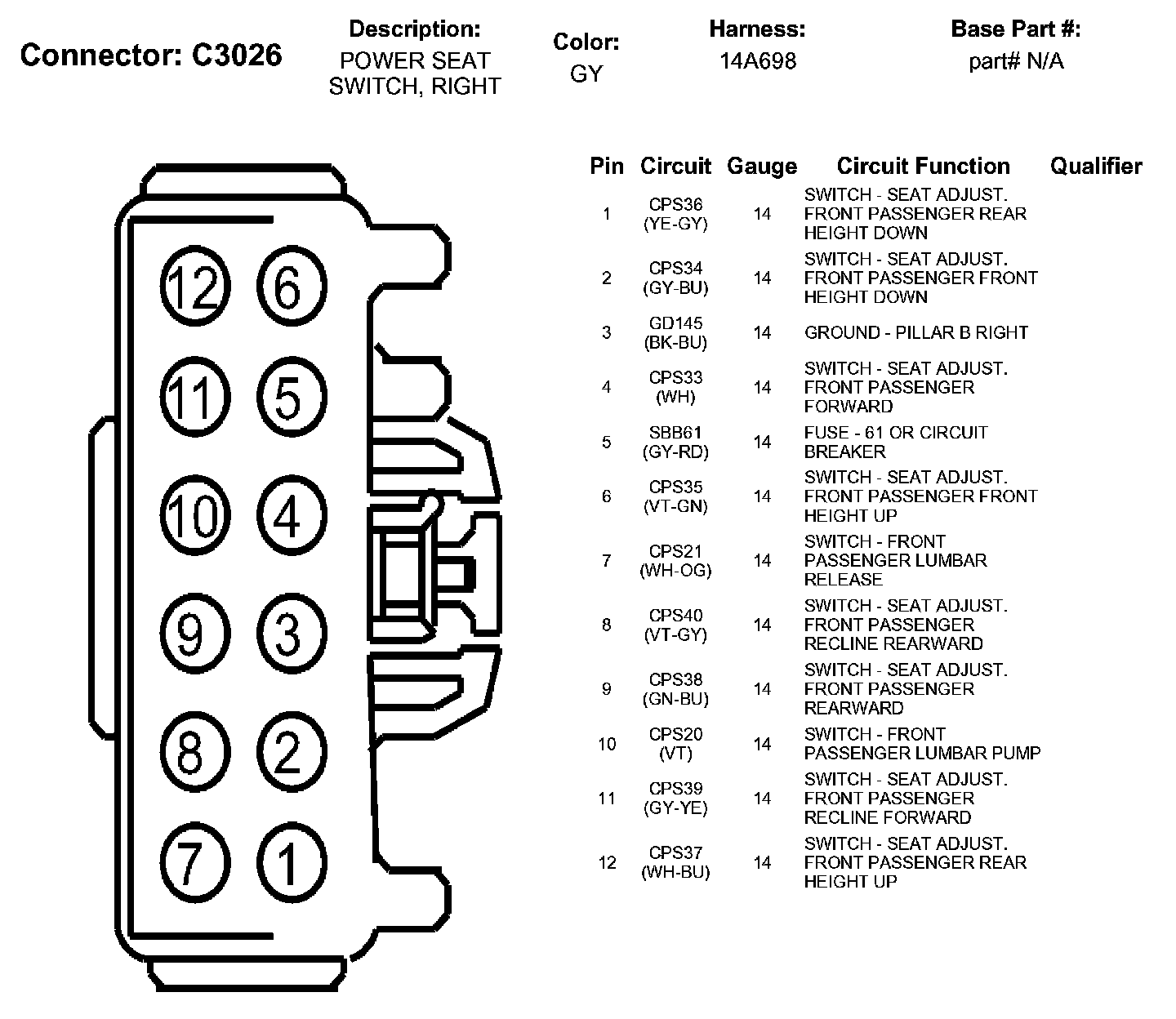 Power Seat Switch, Right