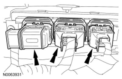 27. Disconnect the 3 PCM electrical connectors and position the wiring harness aside.