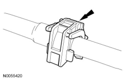 19. Remove the safety clip from the A/C suction tube fitting.