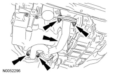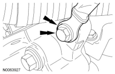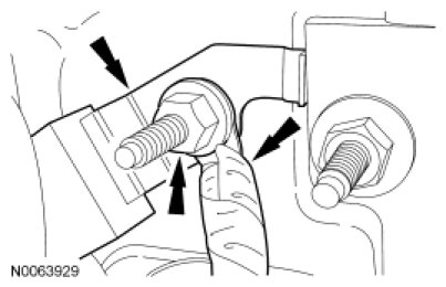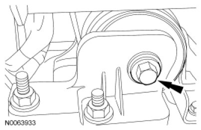 33. NOTICE: The transaxle through bolt must be loosened prior to removing the engine mount and lowering the front of the engine. Failure to follow these instructions may cause internal damage to the hydraulic transaxle mount and possible fluid leakage.