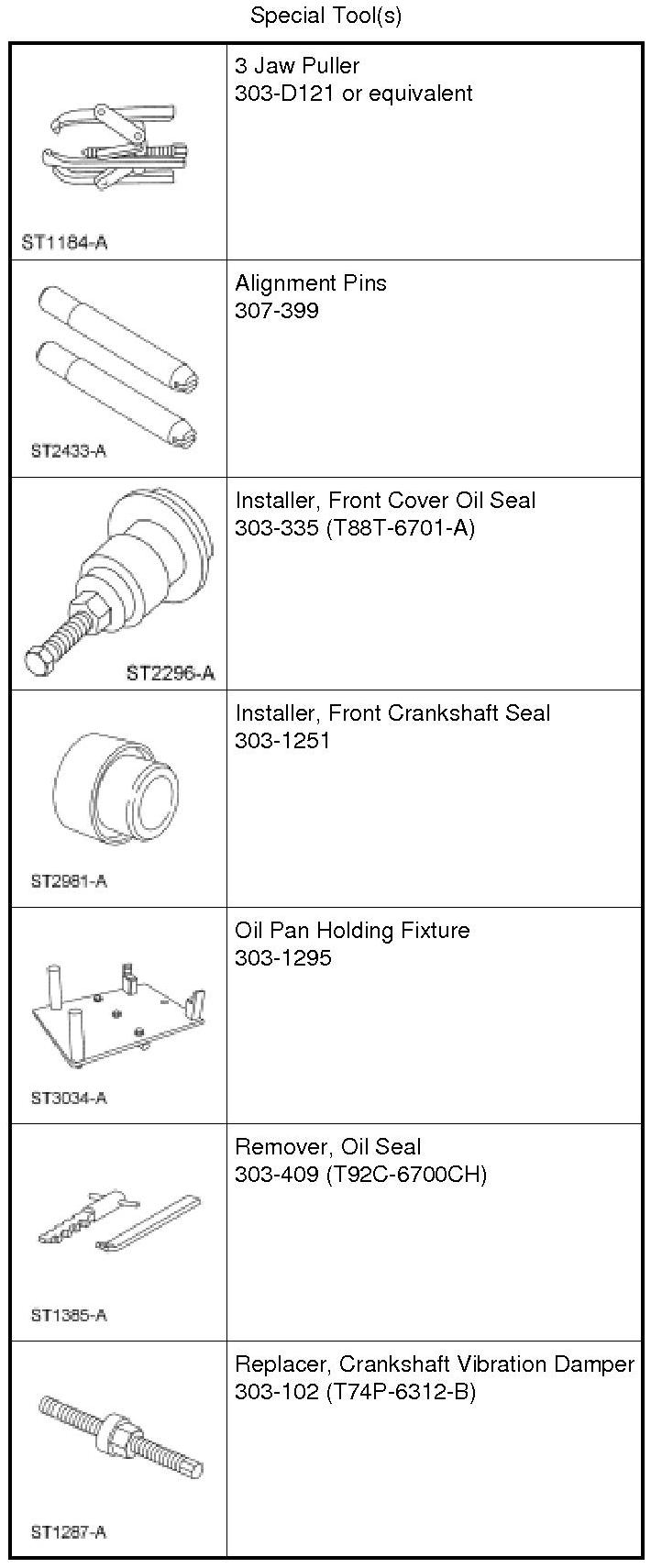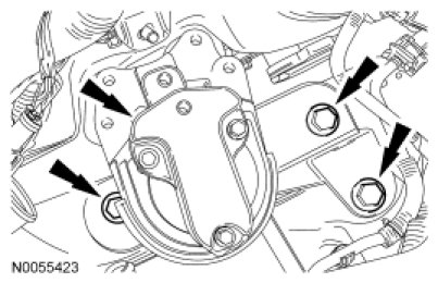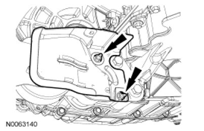 - Tighten the bolts one turn at a time in a criss-cross pattern until the engine front cover-to-cylinder block seal is released.