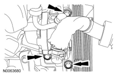 Remove the 2 power steering reservoir nuts.