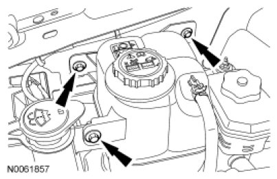 28. Remove the 3 bolts and position the degas bottle aside.