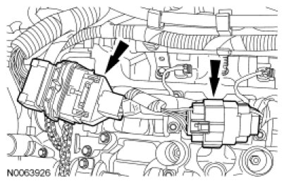 Remove the bolts, the LH and the RH Variable Camshaft Timing (VCT) solenoids.