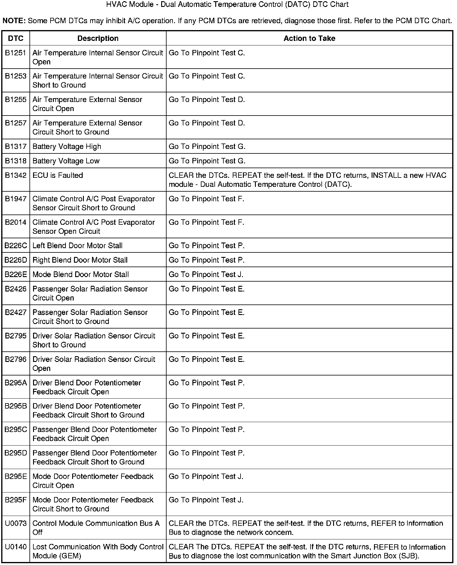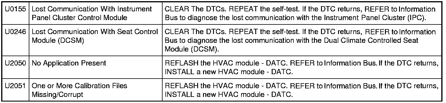 HVAC Module - Dual Automatic Temperature Control (DATC) DTC Chart