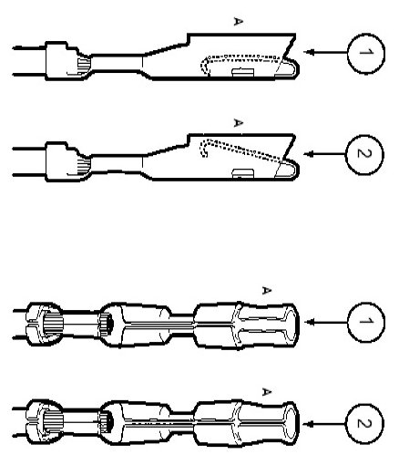 - Use heat shrinkable tubes marked with ES-1 (16-22 GA) or ES-2 (10-18 GA) to seat wire splice.
