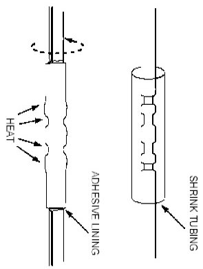 8. Use shielded heat gun to heat the repaired area until adhesive flows Out of both ends of heat shrink tubing.