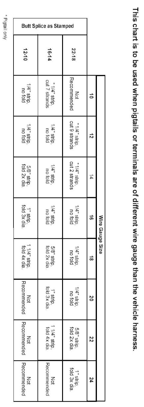 The given chart is to be used when pigtails or terminals are different wire gauge than the vehicle harness.