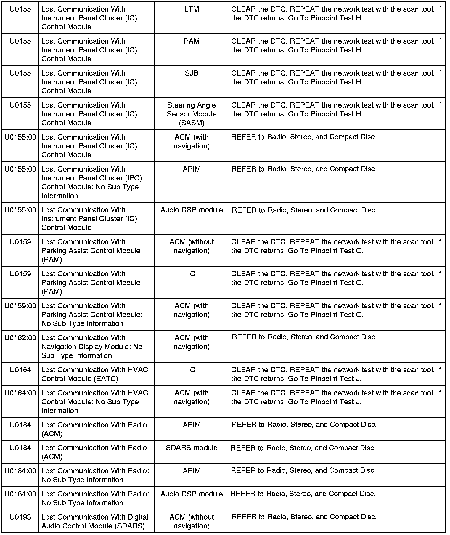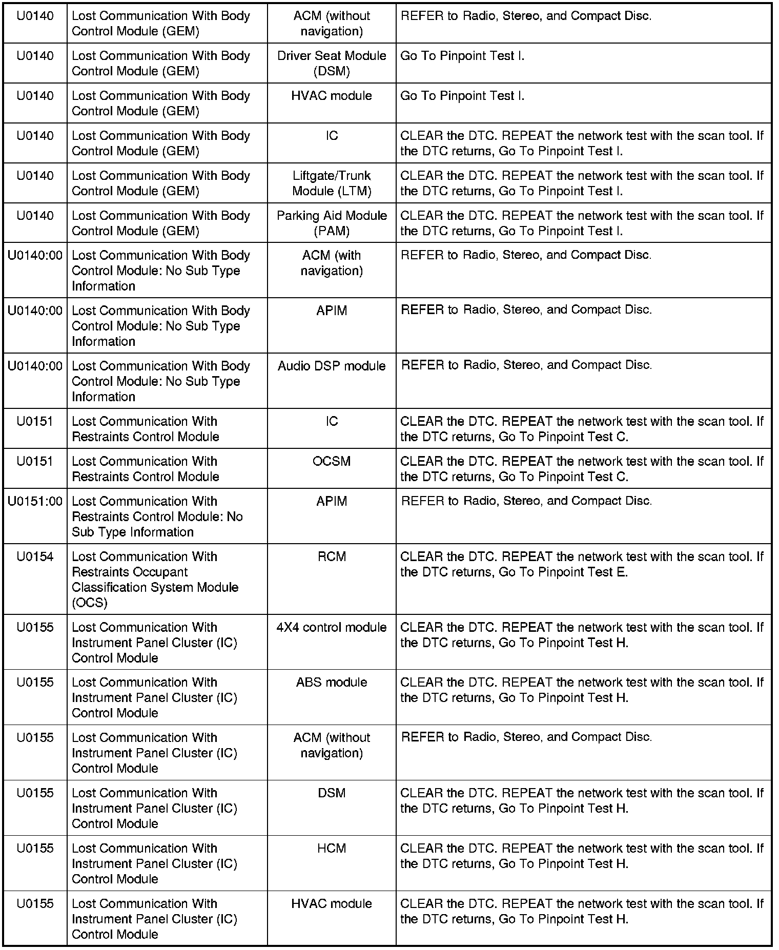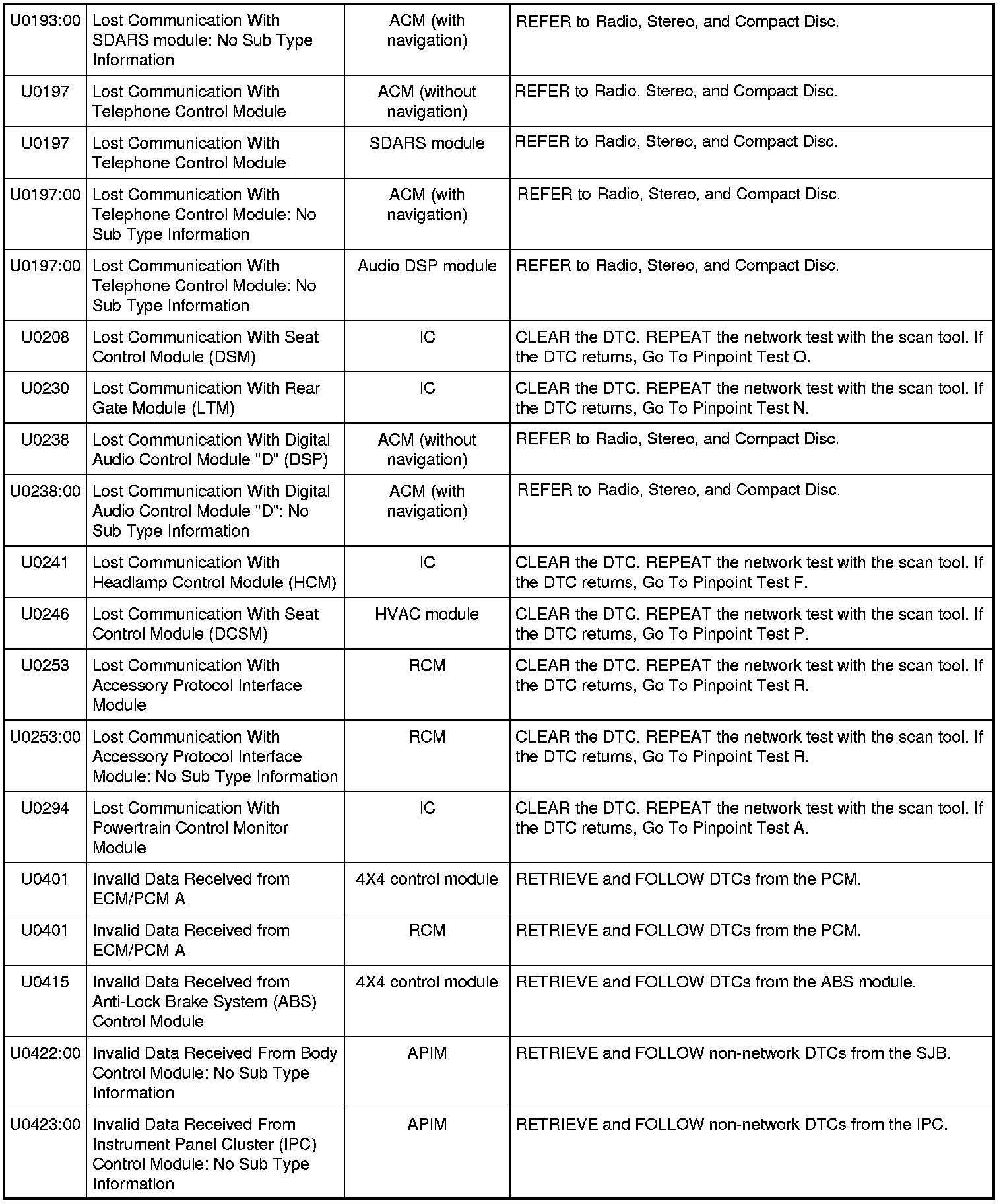 Home >> Ford >> 2009 >> Edge AWD V6-3.5L >> Repair and Diagnosis >> Powertrain Management >> Computers and Control Systems >> Information Bus >> Testing and Inspection >> Diagnostic Trouble Code Tests and Associated Procedures >> Communications Network