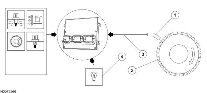 1. The powertrain control module (PCM) synchronized ignition spark is based on information received from the crankshaft position (CKP) sensor. The CKP signal generated is also the main input used in determining cylinder misfire.