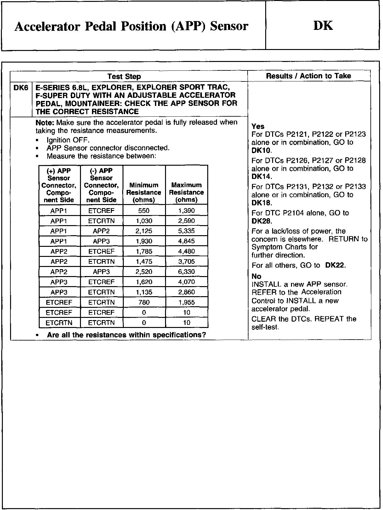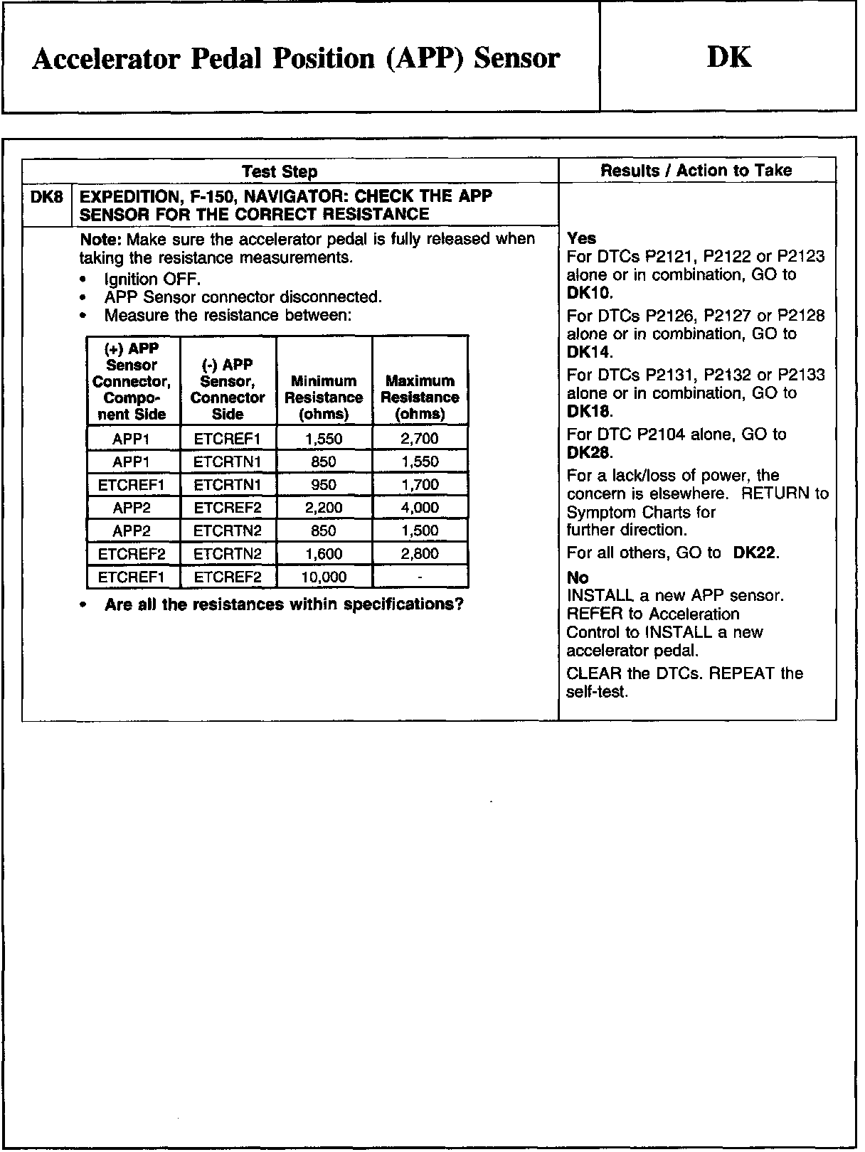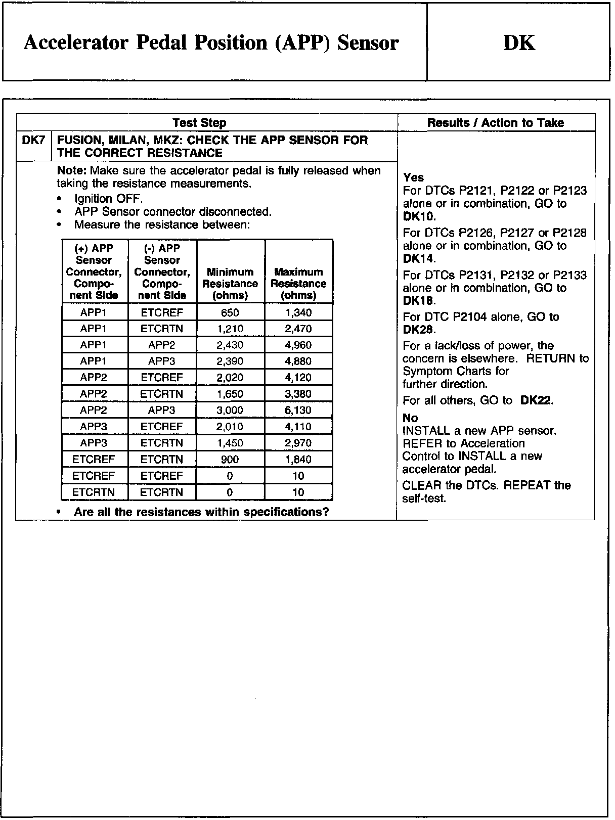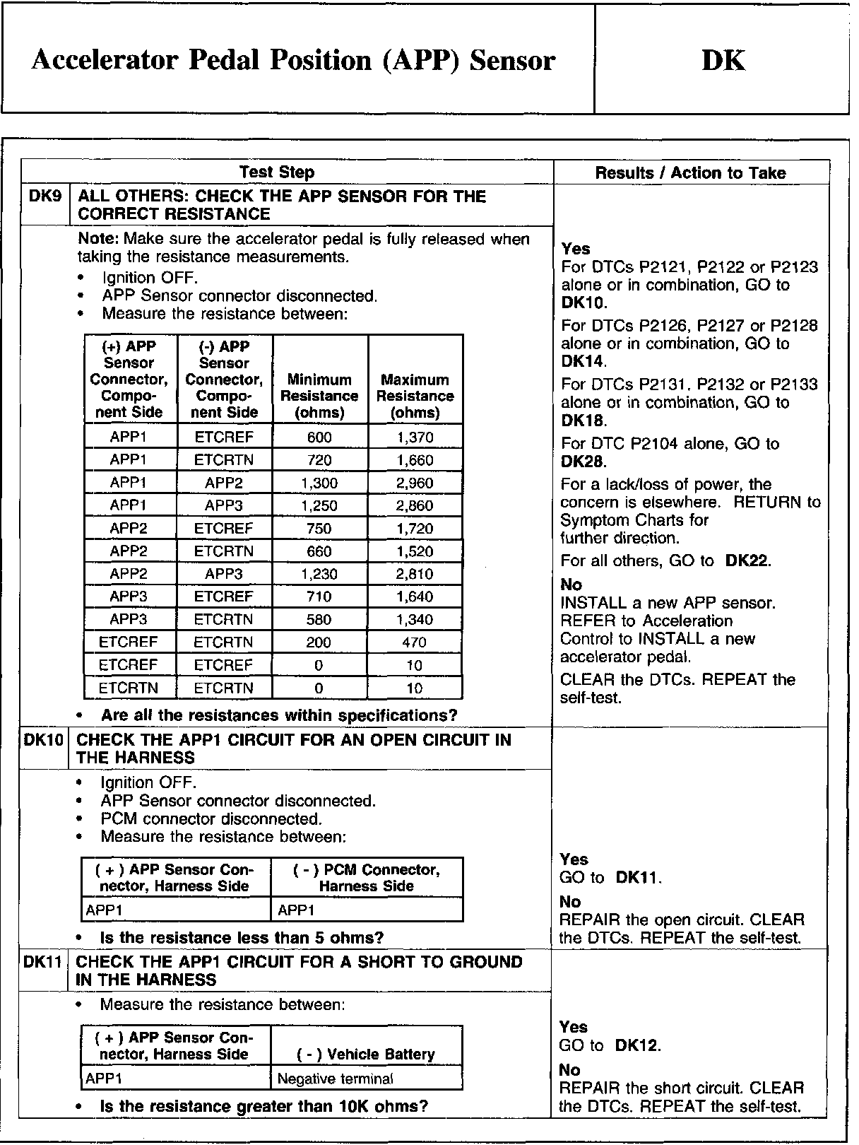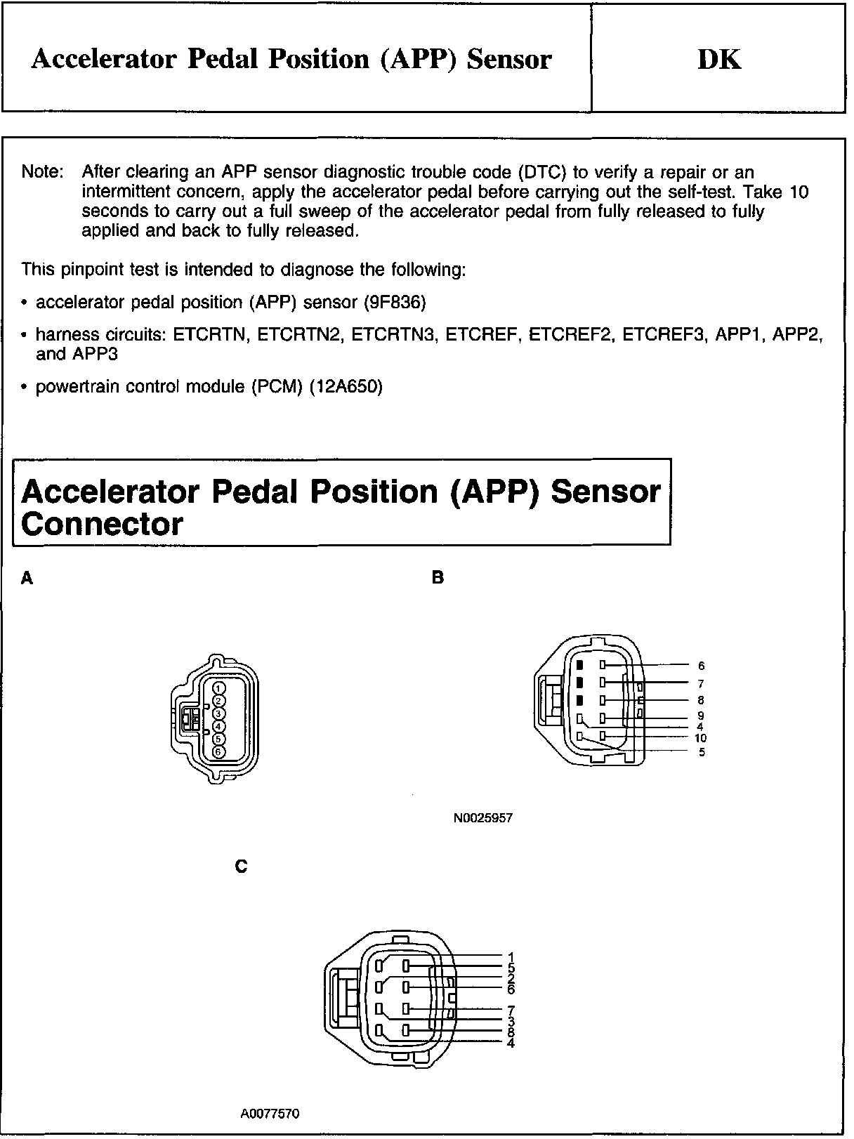 PINPOINT TEST DK: ACCELERATOR PEDAL POSITION (APP) SENSOR