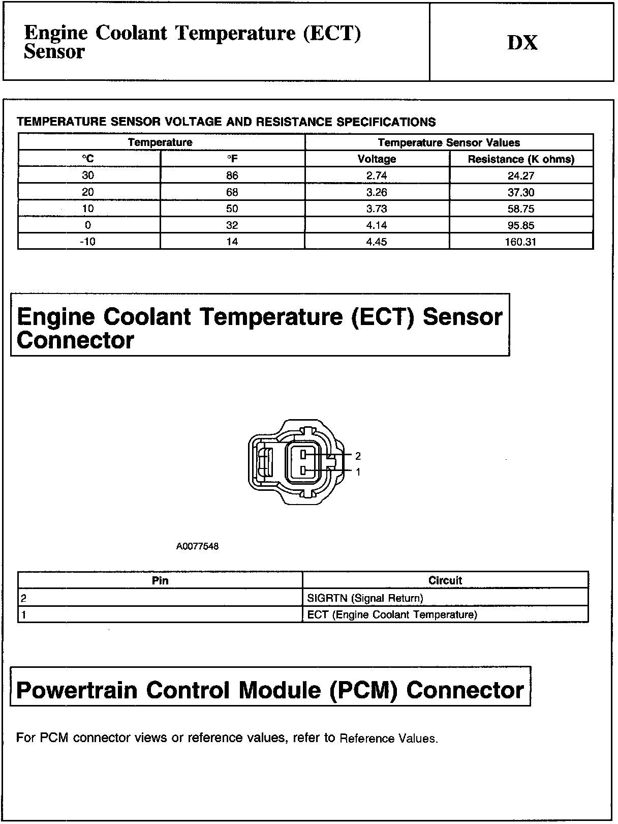 DX - Engine Coolant Temperature (ECT) Sensor