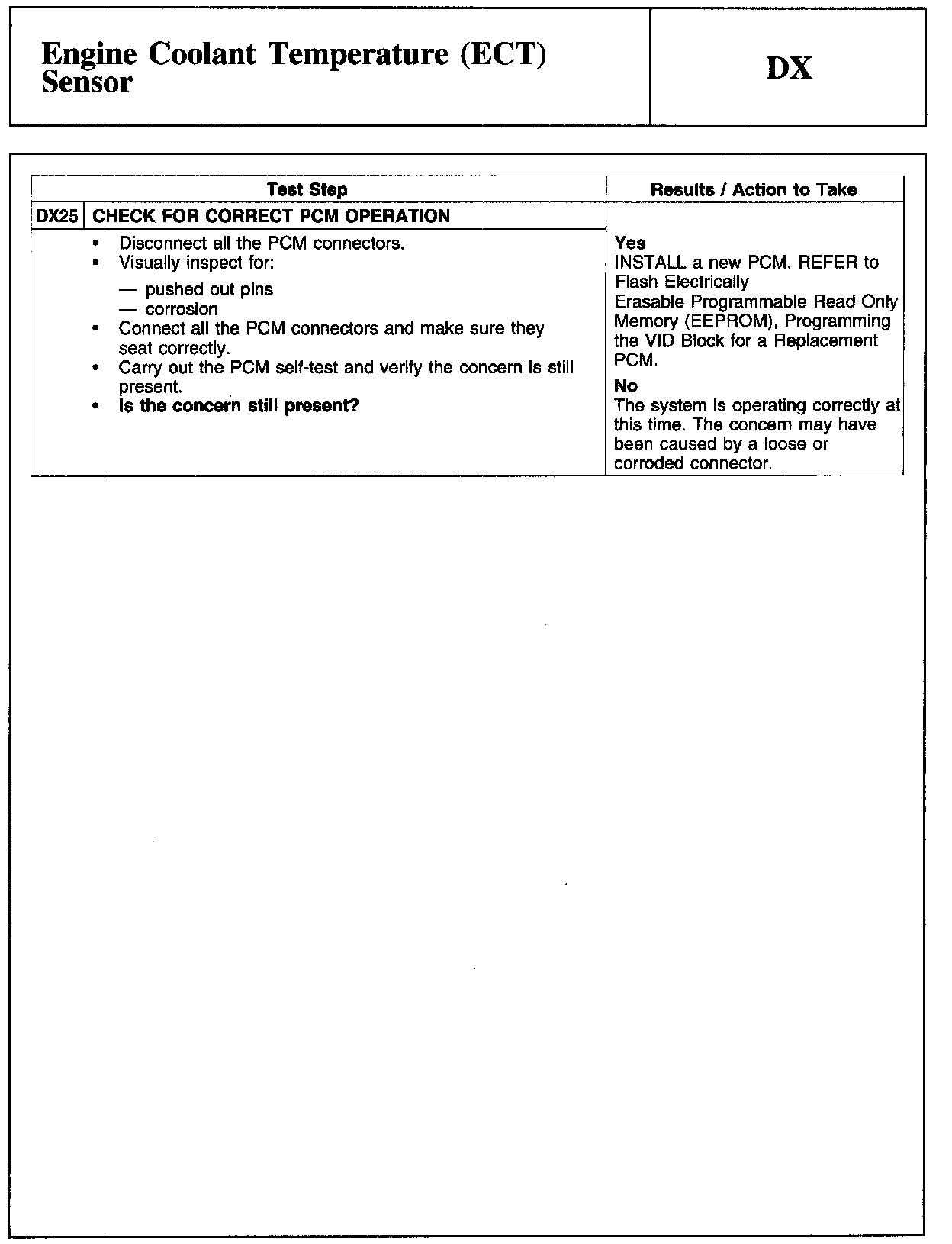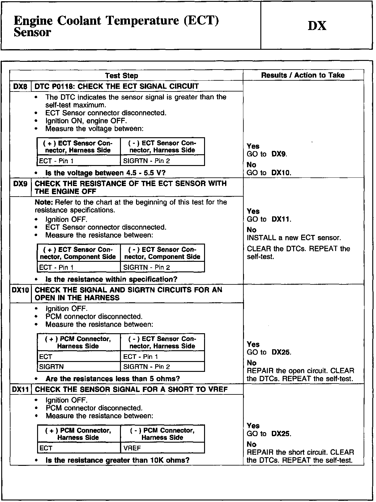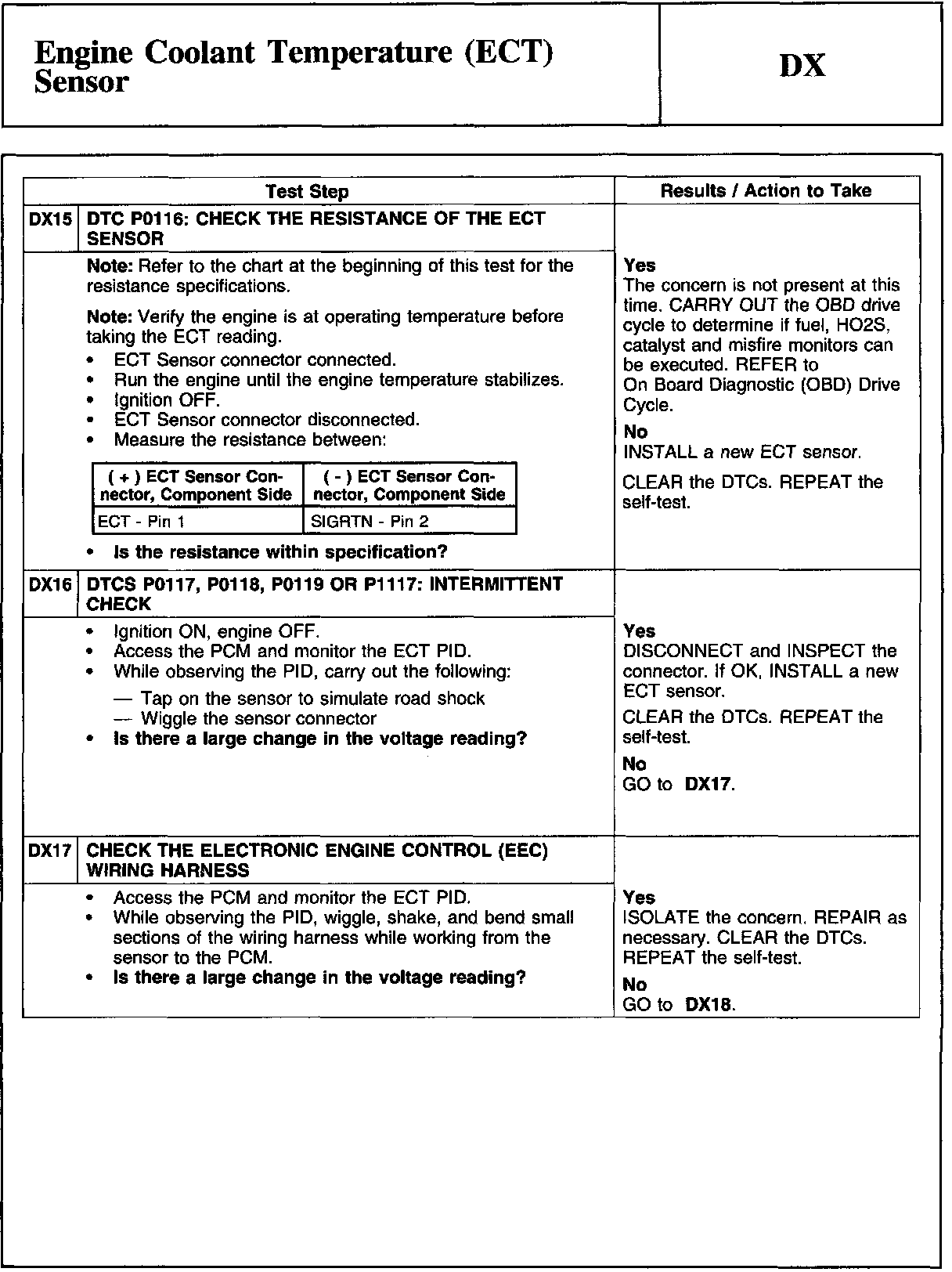 Home >> Ford >> 2009 >> Edge AWD V6-3.5L >> Repair and Diagnosis >> Powertrain Management >> Computers and Control Systems >> Testing and Inspection >> Pinpoint Tests >> DX - Engine Coolant Temperature (ECT) Sensor